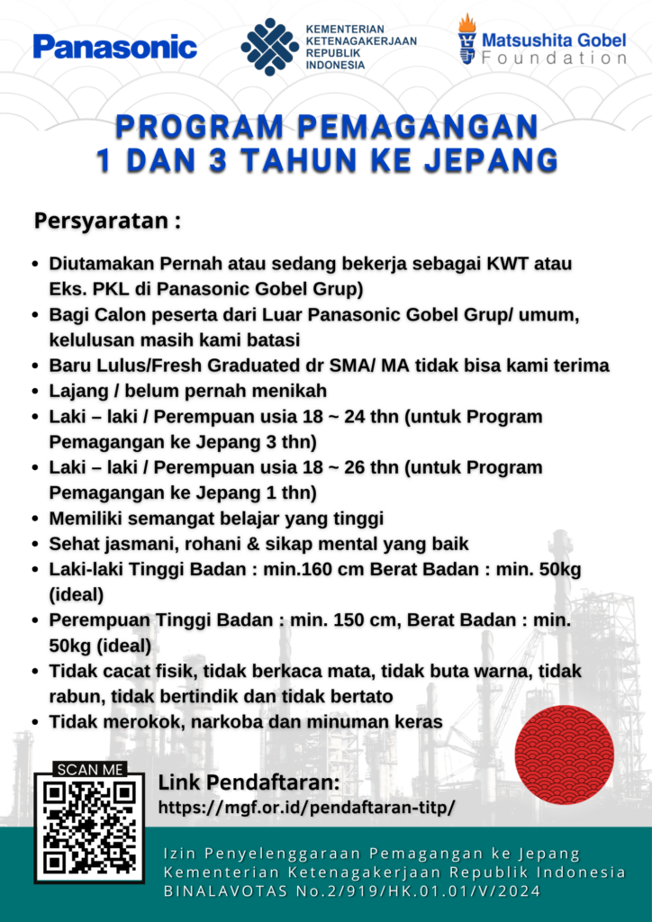 Untuk pendaftaran calon Peserta Magang ke Jepang, silakan klik tombol daftar